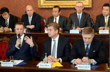 MInebea press conference: L- Minebea Europe general director, Minebea Slovakia CEO Jörg Hoffmann, Economy Minister Peter Žiga and Prime Minister Robert Fico. (Source: TASR)